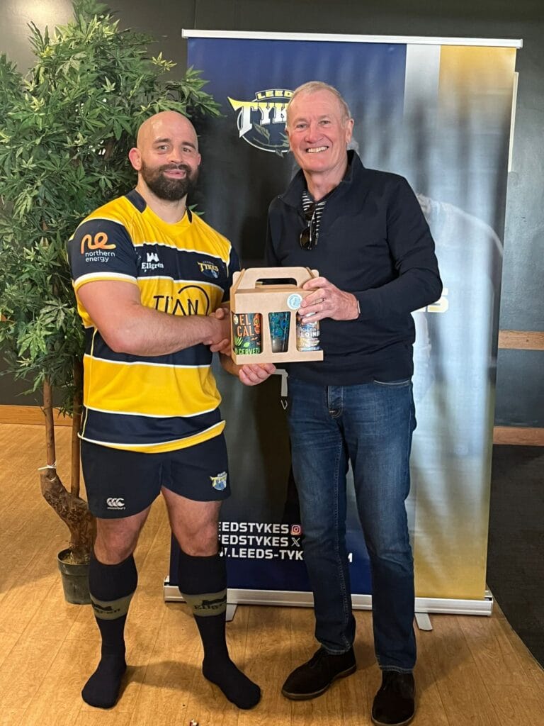 Toby Williams was the Leeds Tykes Player of the Match. The POTM is sponsored by Horsforth Brewery. He was awarded his prize of beer by Howard Illingworth.