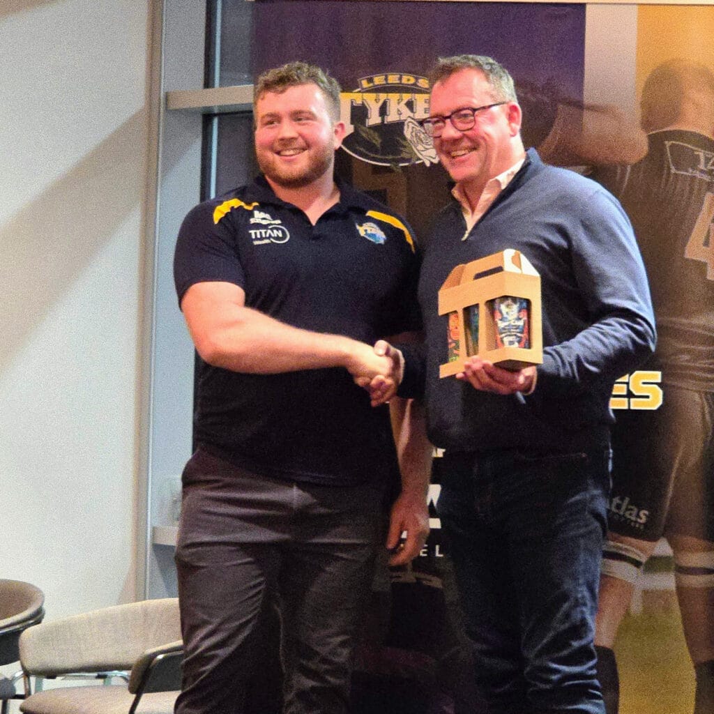 Will Dennis was Leeds Tykes Player of the Match. The POTM is sponsored by Horsforth Brewery and was presented by Mark Puleikis, CEO Titan Wealth.